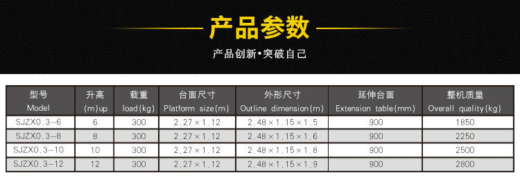 1、 剪叉式主體結(jié)構(gòu)和安全護(hù)欄,根據(jù)需要做伸縮臺面